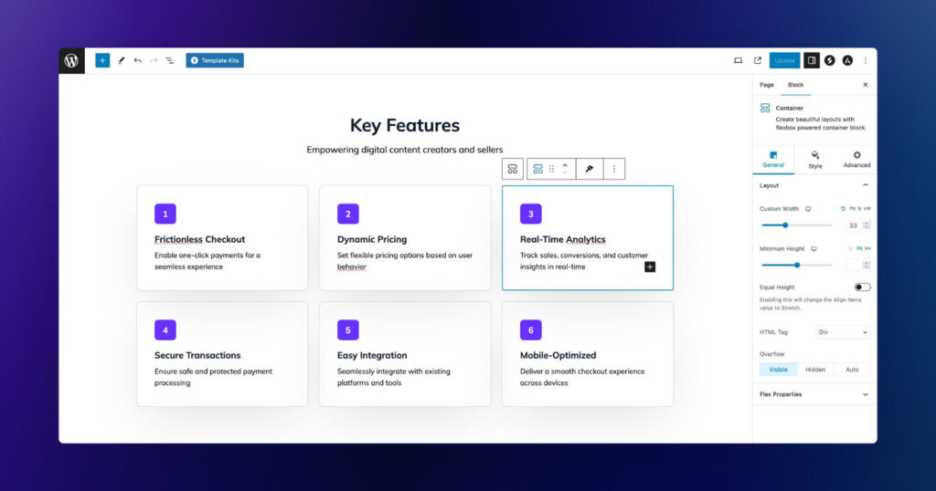ZipWP uses Spectra blocks alongside the Astra theme, so it’s really easy to edit content using the WordPress block editor (aka Gutenberg).