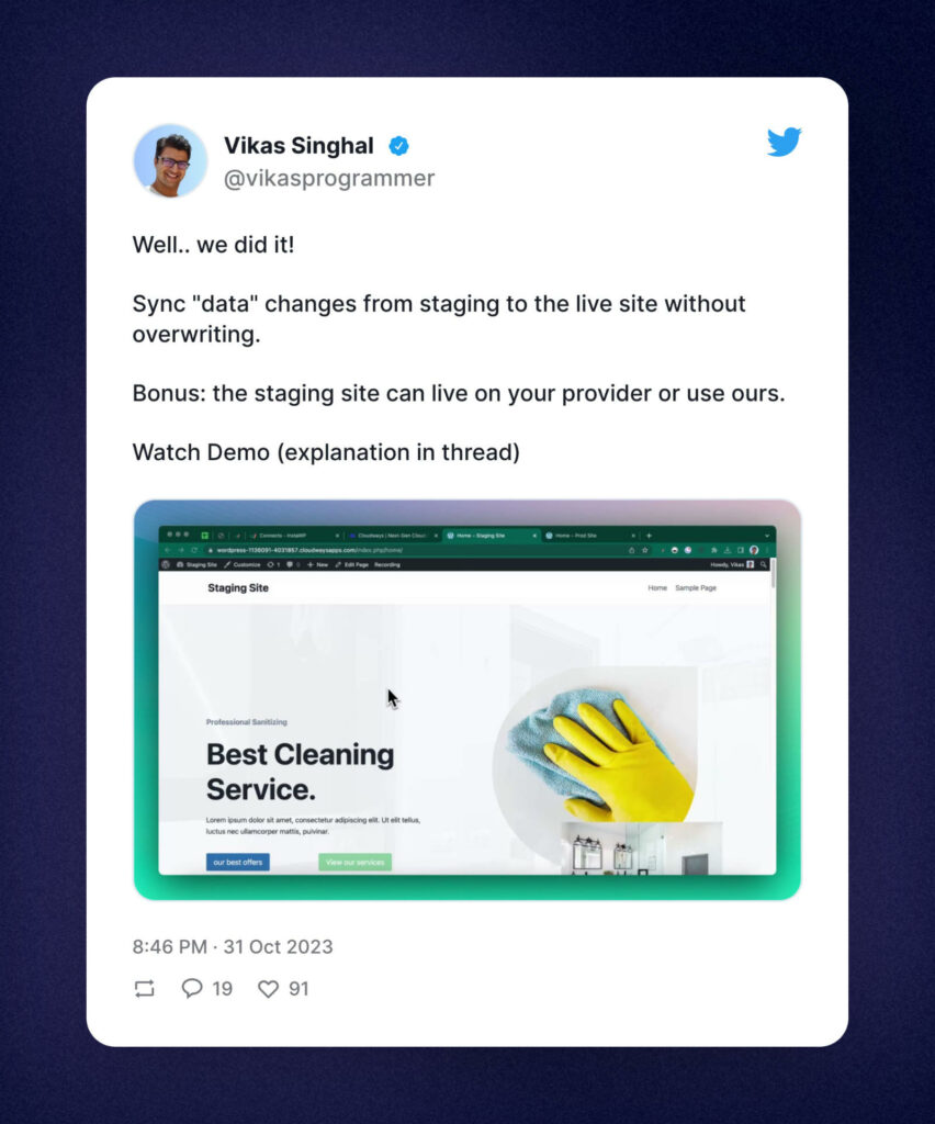 “In the video above, I am syncing a home page change from staging to live. I have already installed InstaWP Connect plugin on both sites and linked them together (it is a new feature we are releasing tomorrow, 1 Nov).